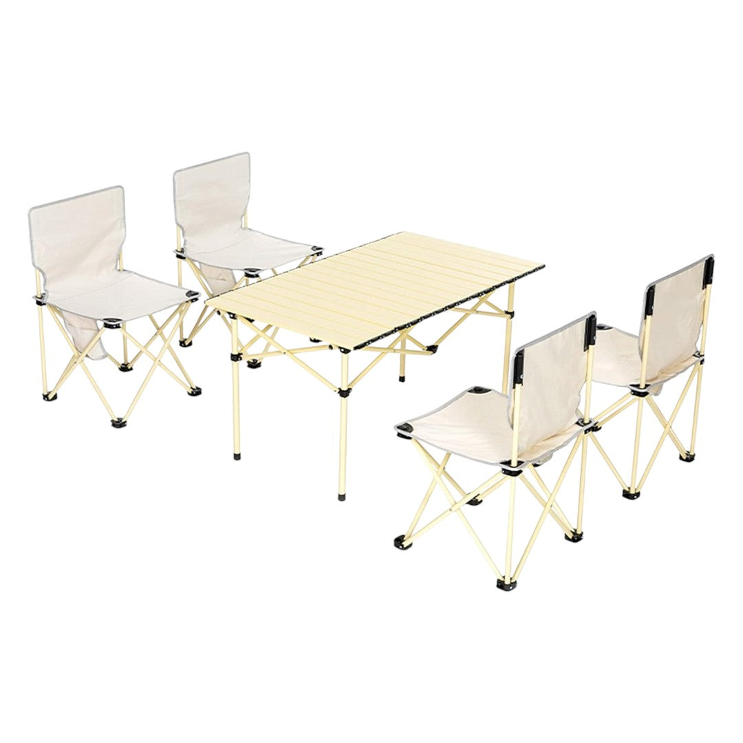 Incluye una mesa rectangular de 90x25x50 cm con cuatro sillas a juego, ideal para espacios modernos y versátiles.