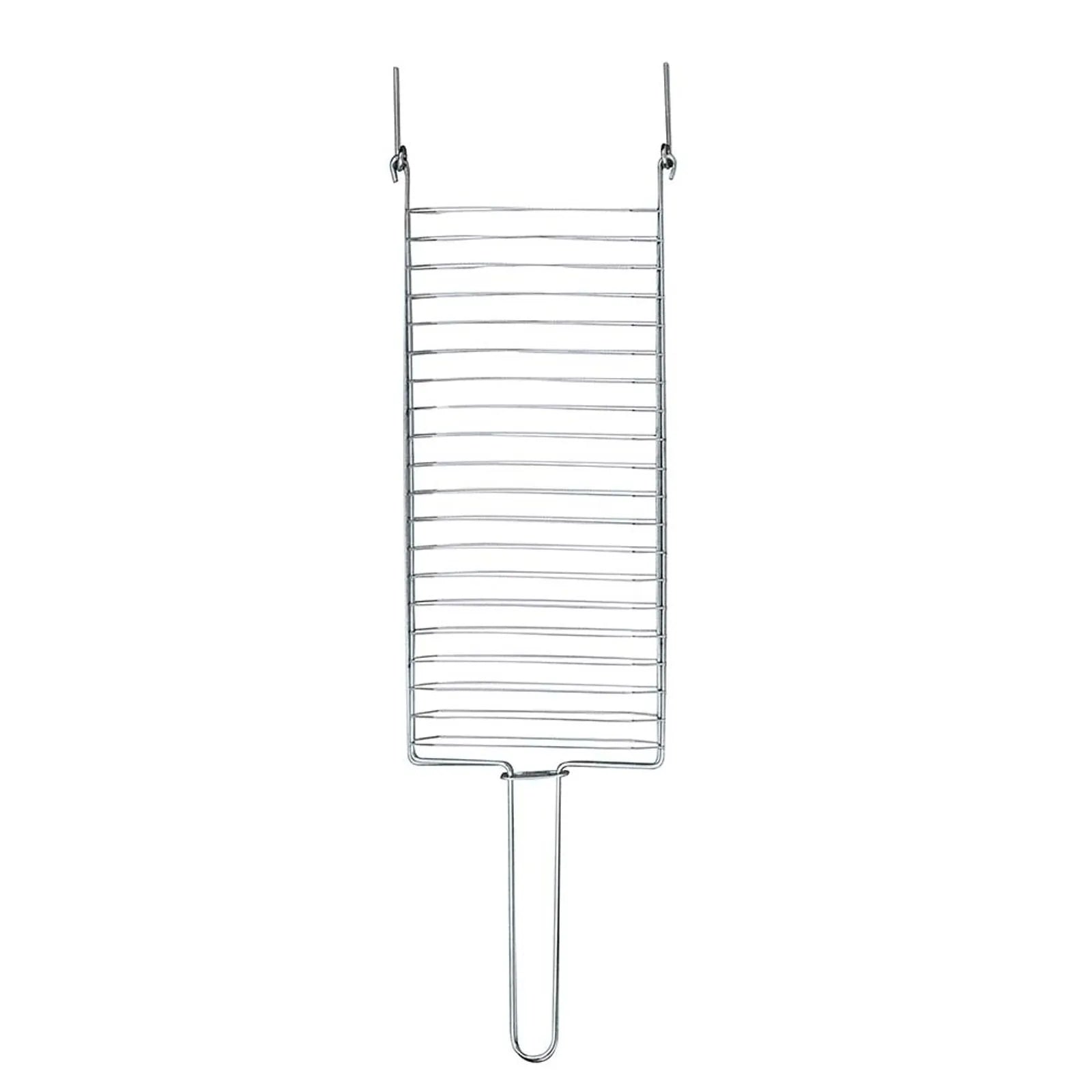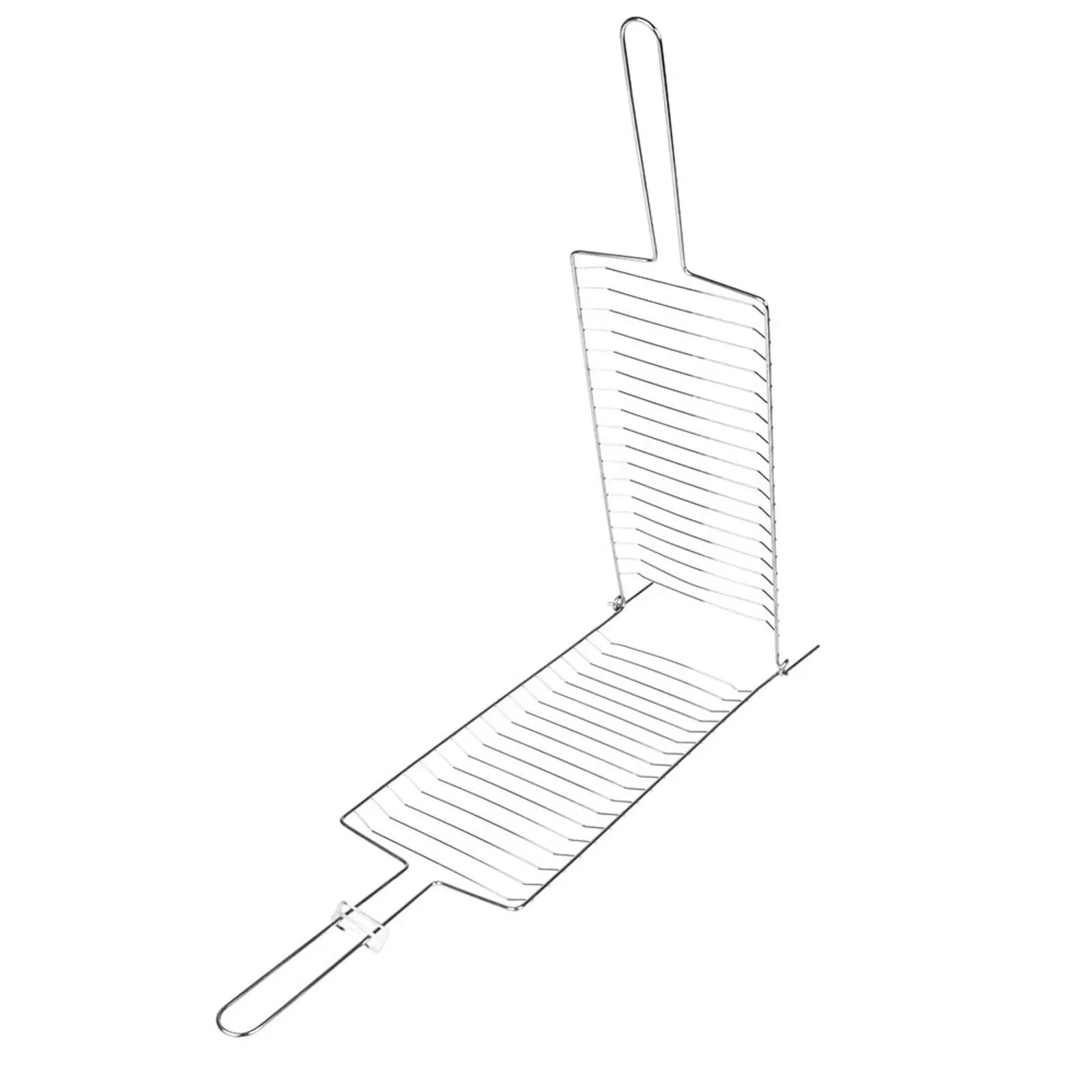 La parrilla Mor Super Grill 02 eleva la experiencia de asar al fuego con elegancia y funcionalidad. Sus dimensiones de 72,5 cm x 21 cm x 2,5 cm y su estructura en alambre con acabado en acero cromado garantizan durabilidad y estilo. Incorpora un soporte para apoyo y un asa que permite colgarla ordenadamente, optimizando su almacenamiento y preparación para cualquier ocasión.