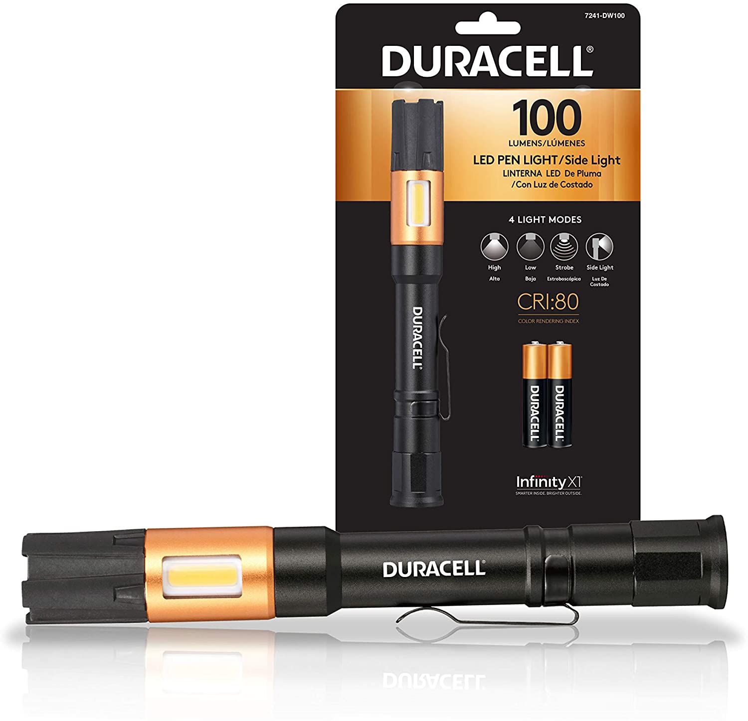 La linterna LED Duracell de 100 lúmenes proporciona una visibilidad clara para cualquier aplicación. Esta linterna se complementa con una luz de área lateral. Perfecto para inspecciones, proyectos eléctricos o uso diario.