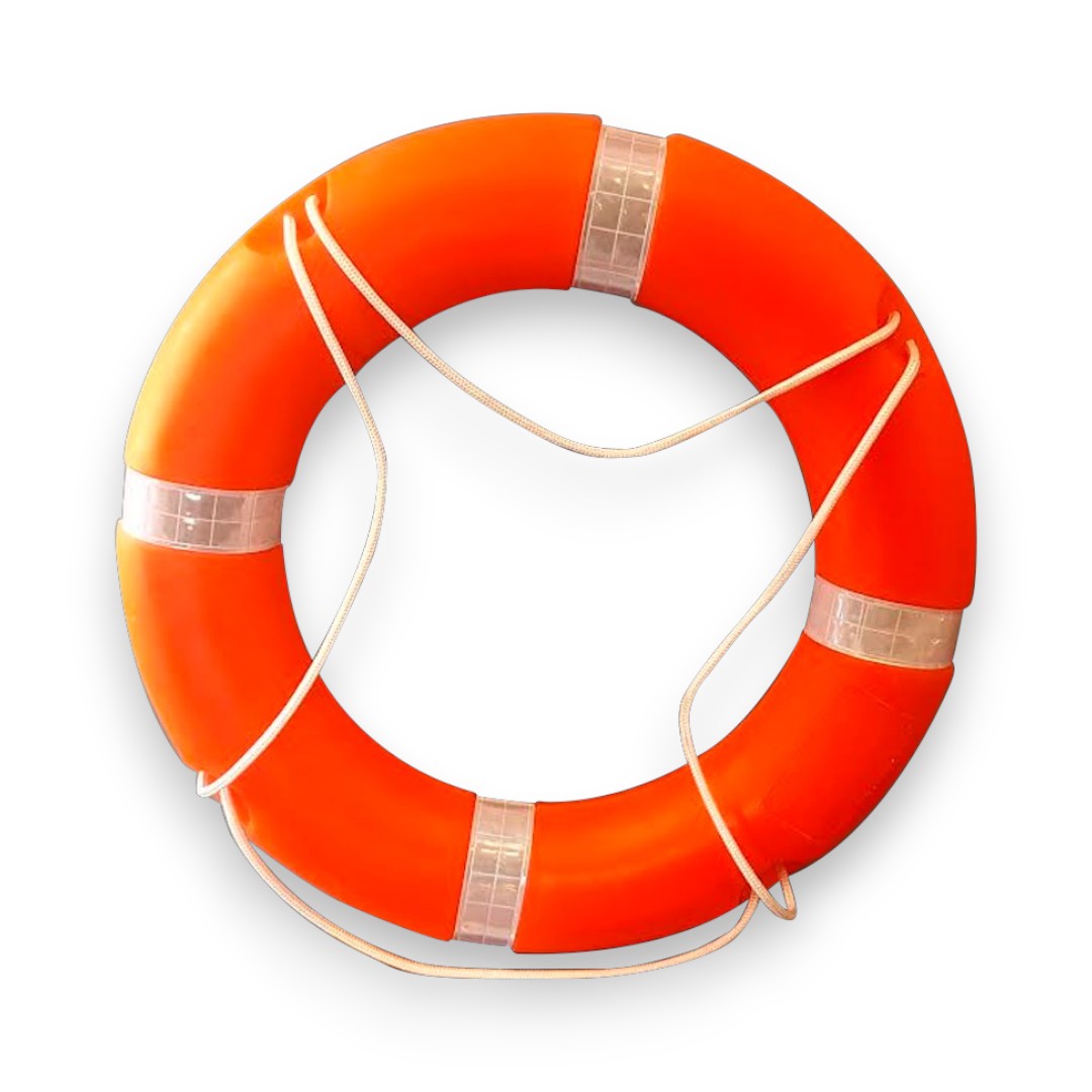 Aro salvavidas con 4 líneas reflectantes de gran durabilidad, resistente al sol y otros agentes climáticos. Sirve como ayuda de flotabilidad y medio de señalización y de recuperación en caso de que una persona caiga al agua. Este dispositivo de rescate debe ser llevado por toda embarcación y artefacto naval como parte de su equipo de seguridad y salvamento, se utiliza en el área industrial, comercial, turística, deportiva u otra. Debe estar en lugares estratégicos y muy a mano para su uso inmediato durante una emergencia. Algunos van unidos a flotadores y/o luces en caso de arrojarlo al mar durante la navegación nocturna. Instrucciones de uso: lanzar hacia la víctima, sostener y/o amarrar cabo, la victima debe entrar en el aro, una vez firme, comenzar a recoger.